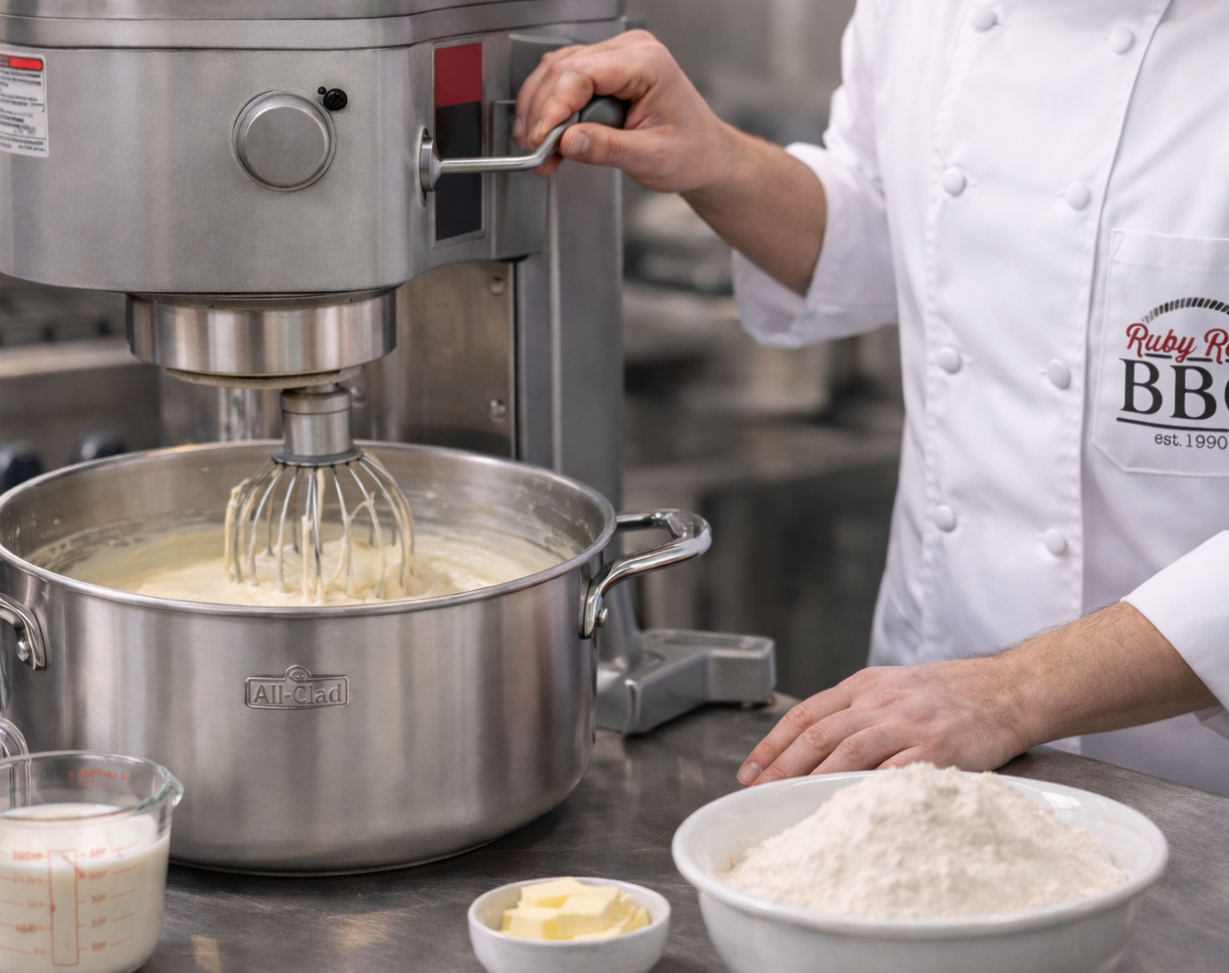 Nearly everything we serve is made from scratch, in-house, every day, using clean, whole ingredients. That includes our meats, side dishes, desserts, BBQ sauces, salad dressings, breakfast items, pancake batter, chocolate ganache, lemon curd, beignets, and fresh herb garnishes. Nothing arrives pre-made. Nothing is simply reheated.